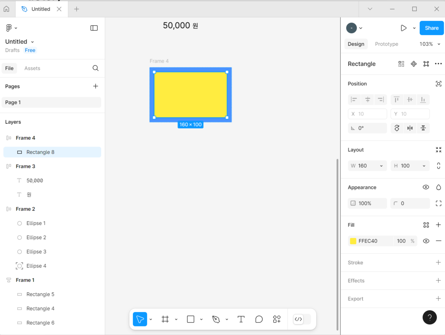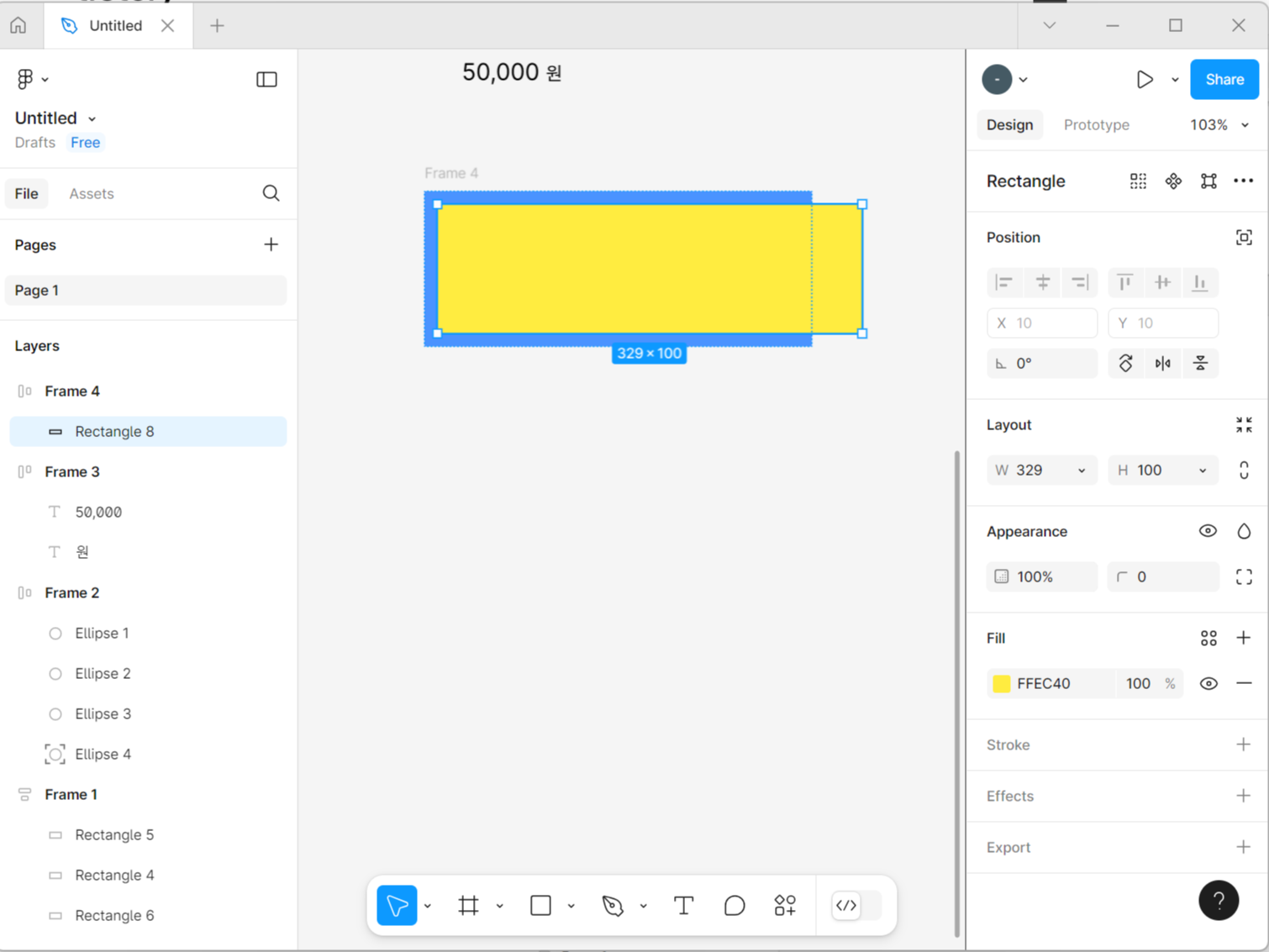 ② 다만 밖의 프레임을 먼저 조정한 후 내부 사각형을 조절하면 프레임은 고정되고 내부 사각형만 크기가 바뀐다.