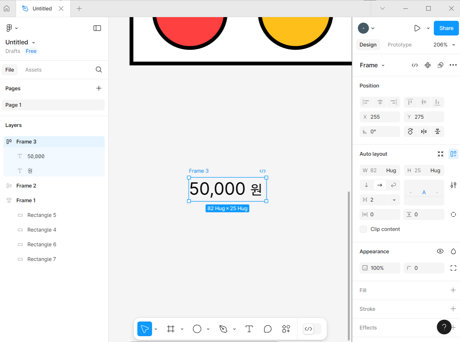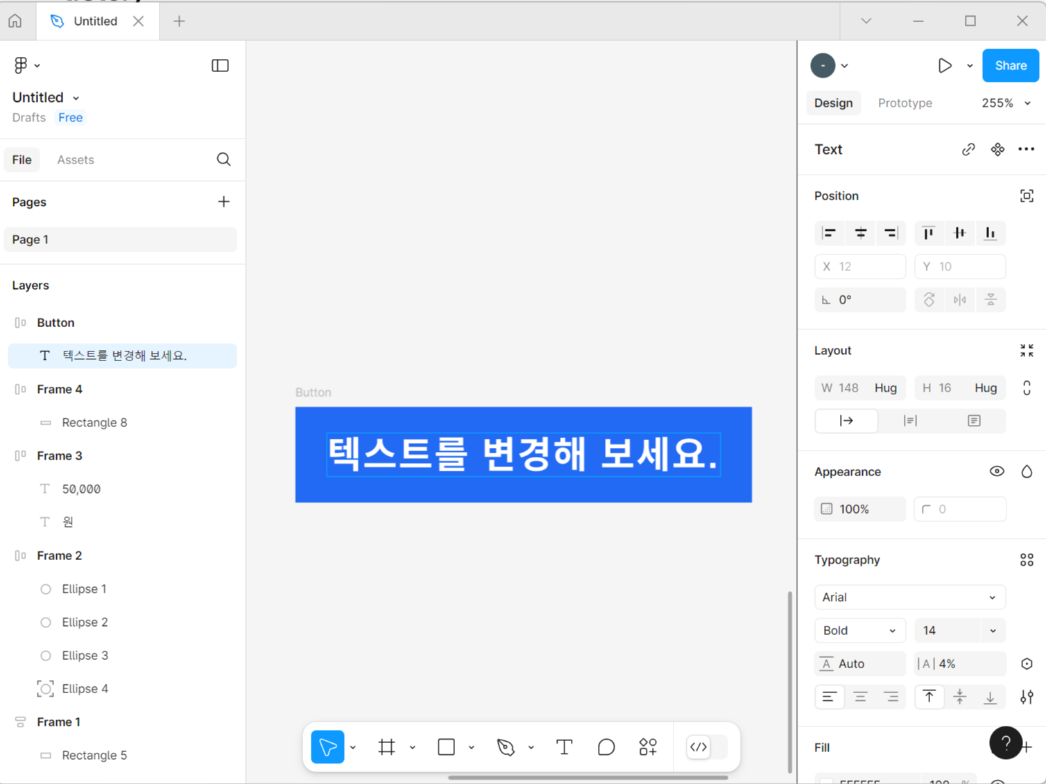 ③ 텍스트 더블클릭 or Ctrl + Enter 후 클릭하면 텍스트 조정 가능 및 텍스트 길이 따라 프레임 자동 조정