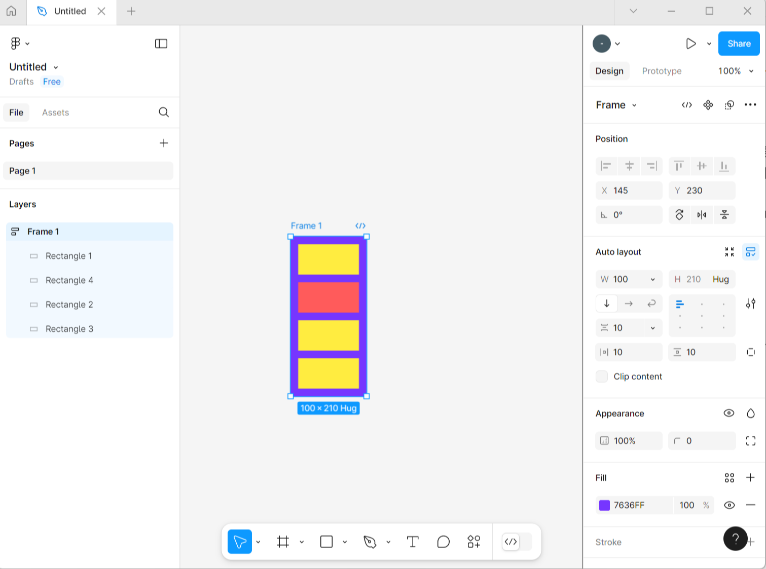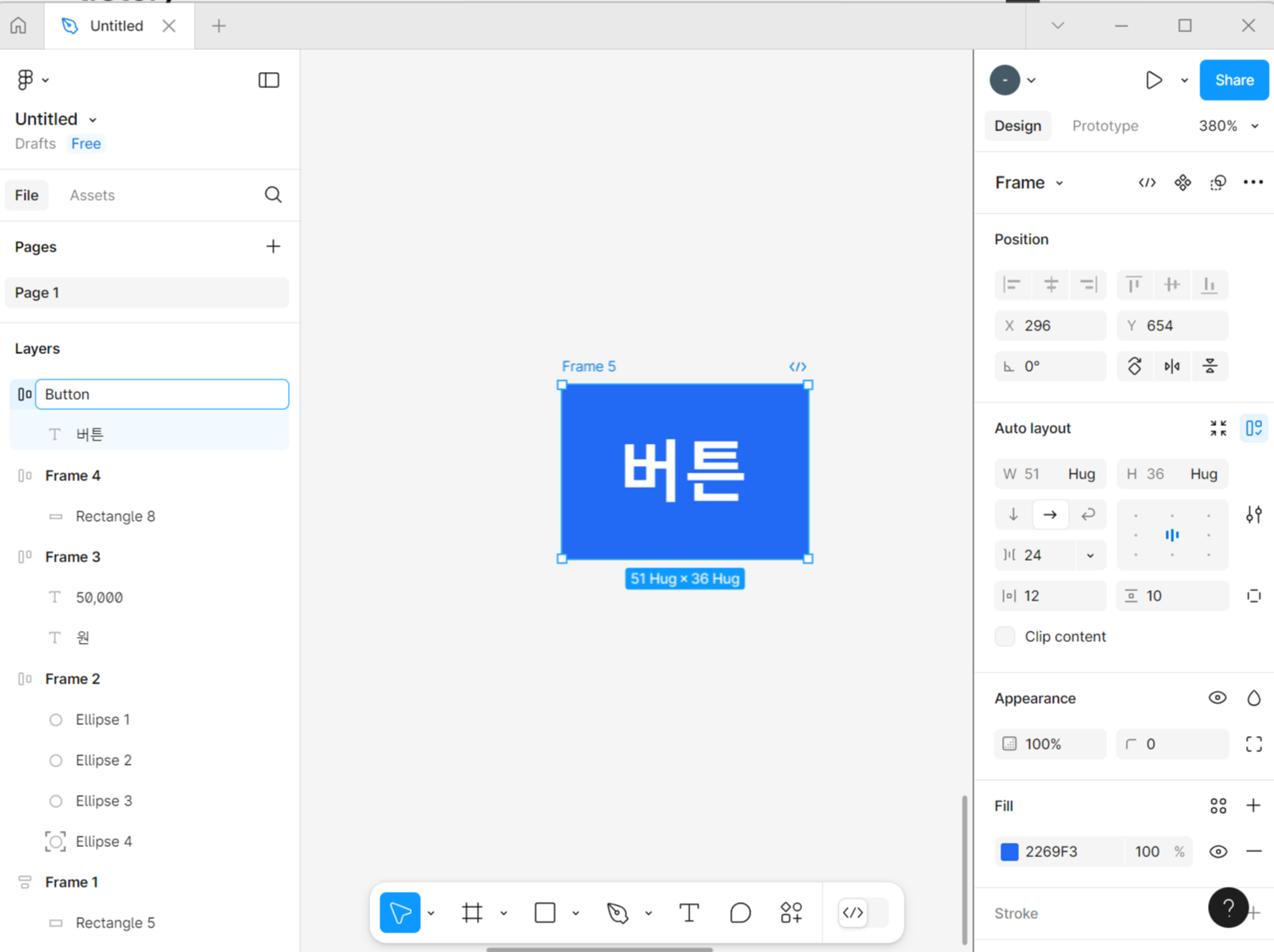 ⑤ 오른쪽 창의 Auto layout에서 줄 간격, 레이어 방향 등 조정 가능